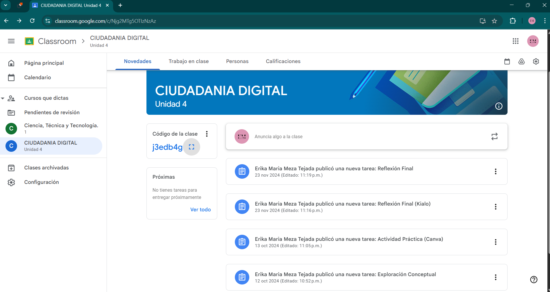 https://classroom.google.com/c/Njg2MTg5OTIzNzAz?cjc=j3edb4g Codigo de la clase: j3edb4g