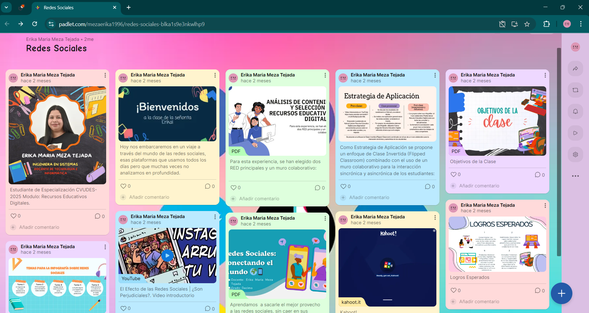 Algunos elementos (como Canva y Kahoot) redirigen fuera de Padlet, lo que puede dificultar la navegación a usuarios con escasa experiencia digital.
